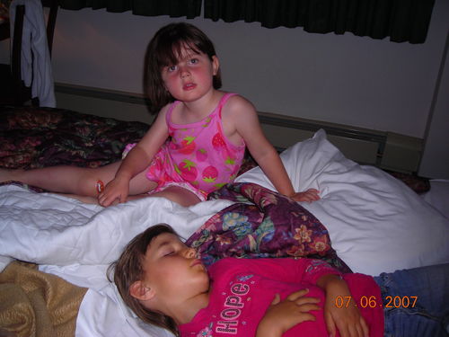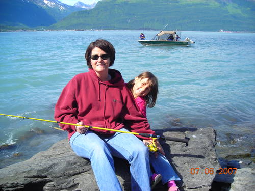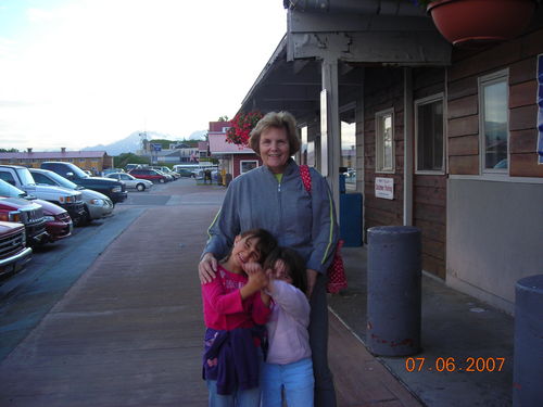 Dee Dee entertains the girls while waiting for a table at Mike's - Valdez, AK.