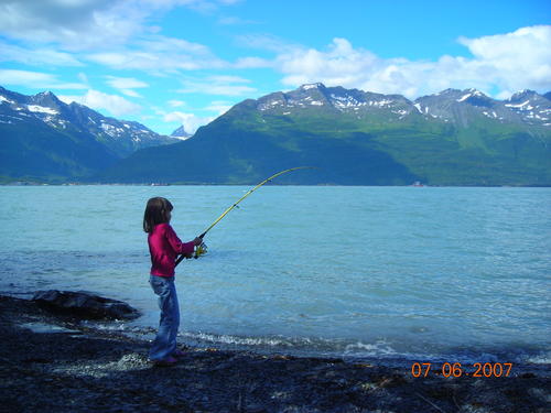 #1 reels in a big one (or is she just stuck on a rock?)!