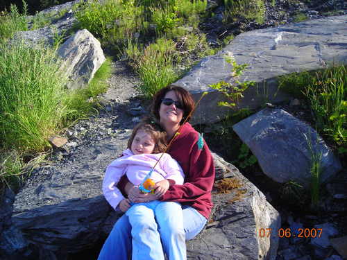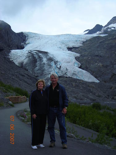Mom and Bz in front of Worthington Glacier.