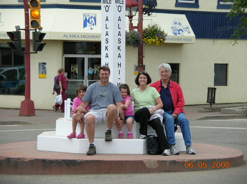 The gang at the start of the Alcan (thank goodness for us it was actually the end).