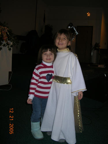 Meghan with 'Angel Gabriel'. Allison's Christmas play - Dec 2005 (Moose Creek Baptist Church).
