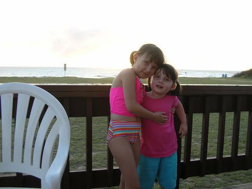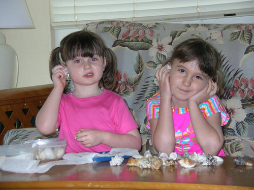 The girls listen for the ocean (as if it's not rouring just out their back door).