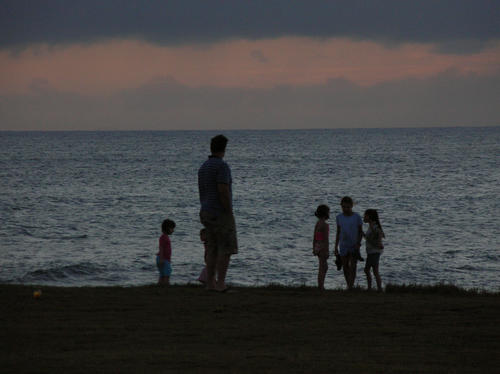 Brad, A and M (with their vacation friends) enjoying another sunset. Barking Sands, Kauai.