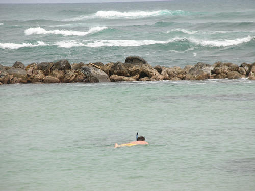 Brad snorkeling off the beach - Lydgate State Park, Kauai.