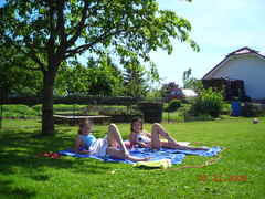 A and her German friend, Enn, enjoying the sun.