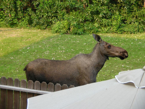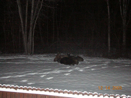 Not a great picture, but a Mother moose and her calf bedded down in our back yard.
