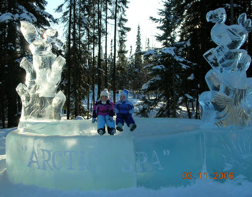 Allison and Meghan take a break from the Ice Slides and relax in the Arctic Spa.