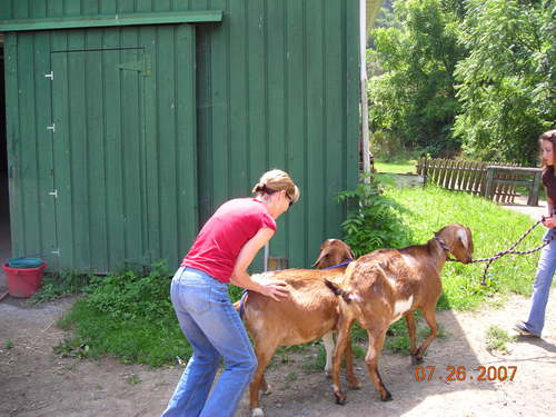 Emma and Jenny try their hands at goat-herding.