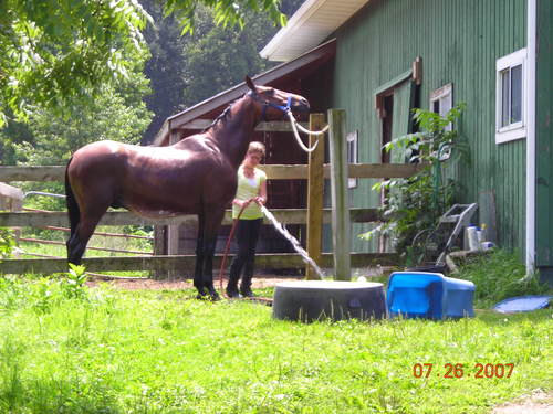 Olivia prepares to give Cupid a much-deserved shower.