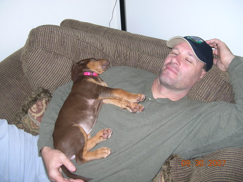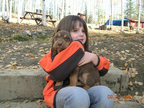 Meghan holds the new pup - ?Maggie, ?Sally, ?Lady Buckeye, ?Chloe.