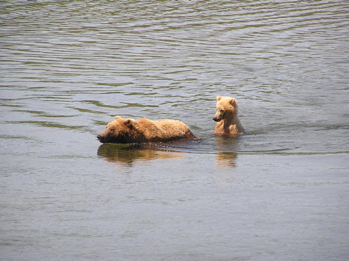 Momma bear takes her cub for a swim (and then refuses to exit the area, leaving us stranded for over an hour!).